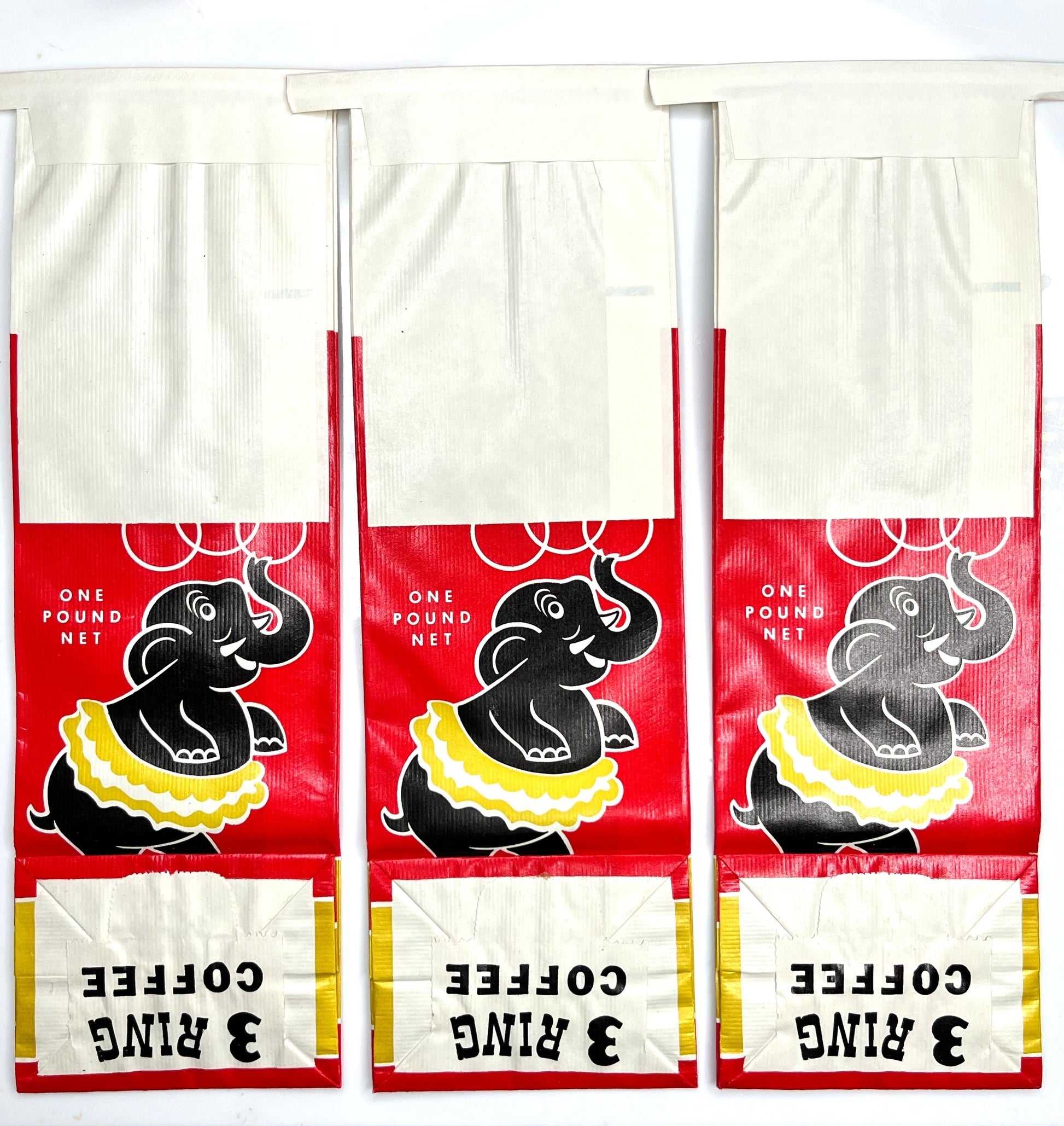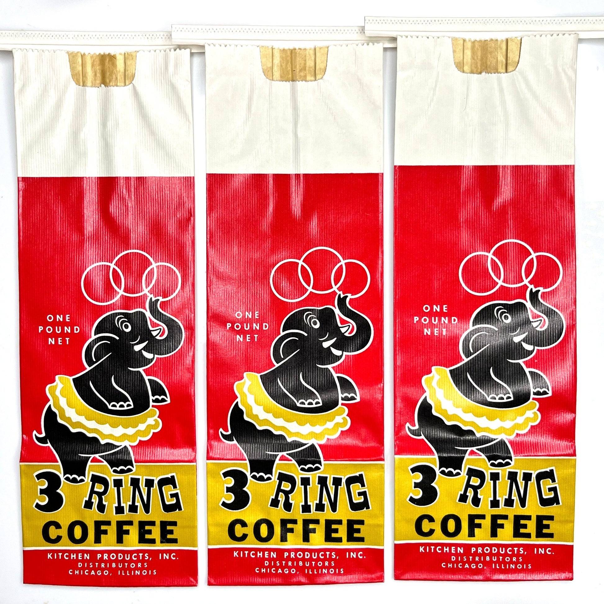 Vintage new old stock “3 Ring Circus” coffee bags. This listing is for 3 bags.