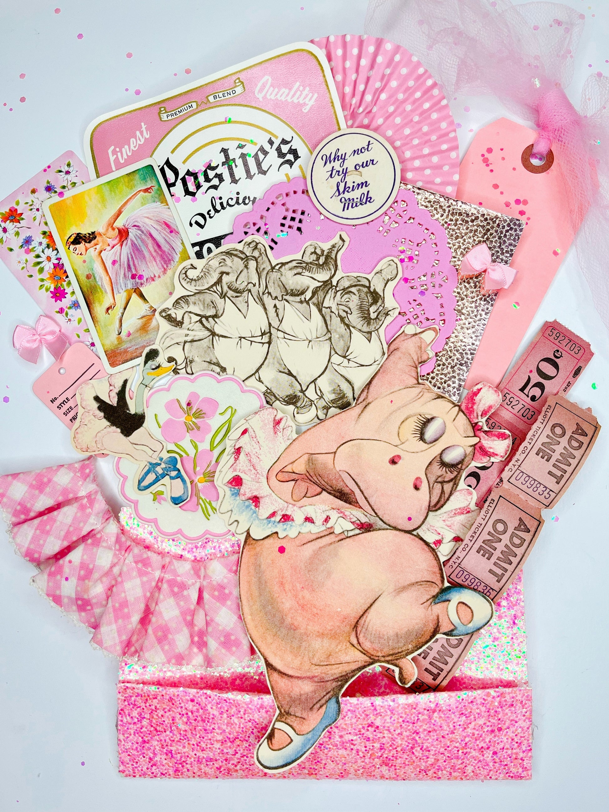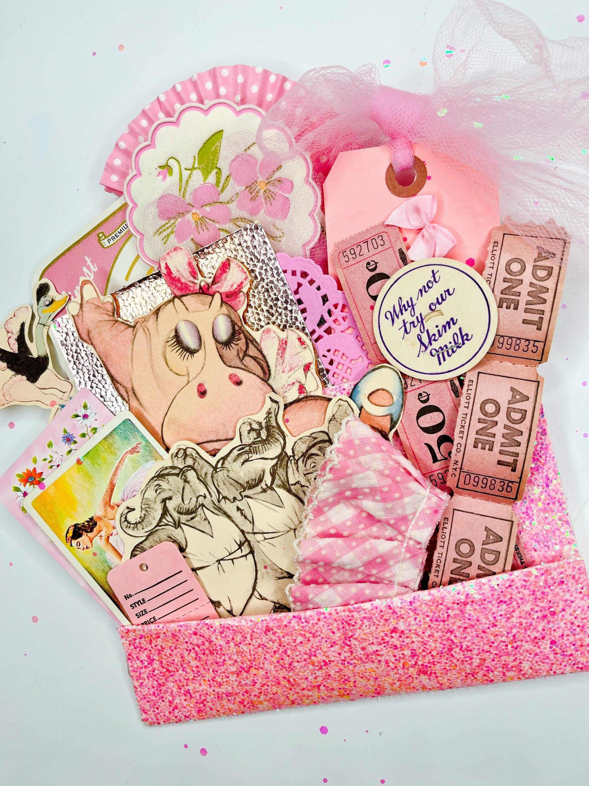 A curated collection of vintage ephemera combined with meticulously cut images from upcycled vintage book pages. All original pieces, no reproductions.