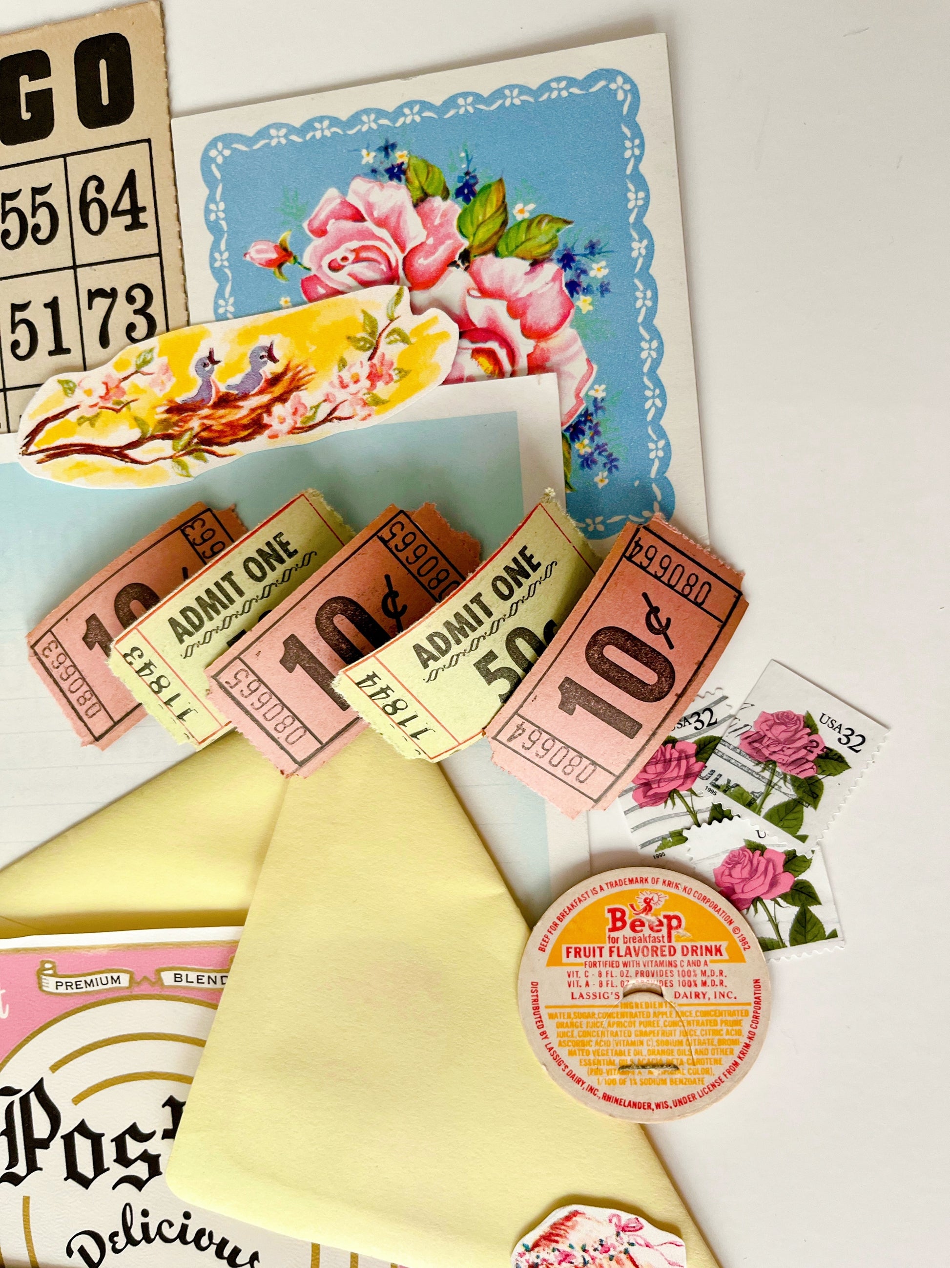 A curated collection of authentic vintage ephemera and reproduction images. You get all pieces shown.
