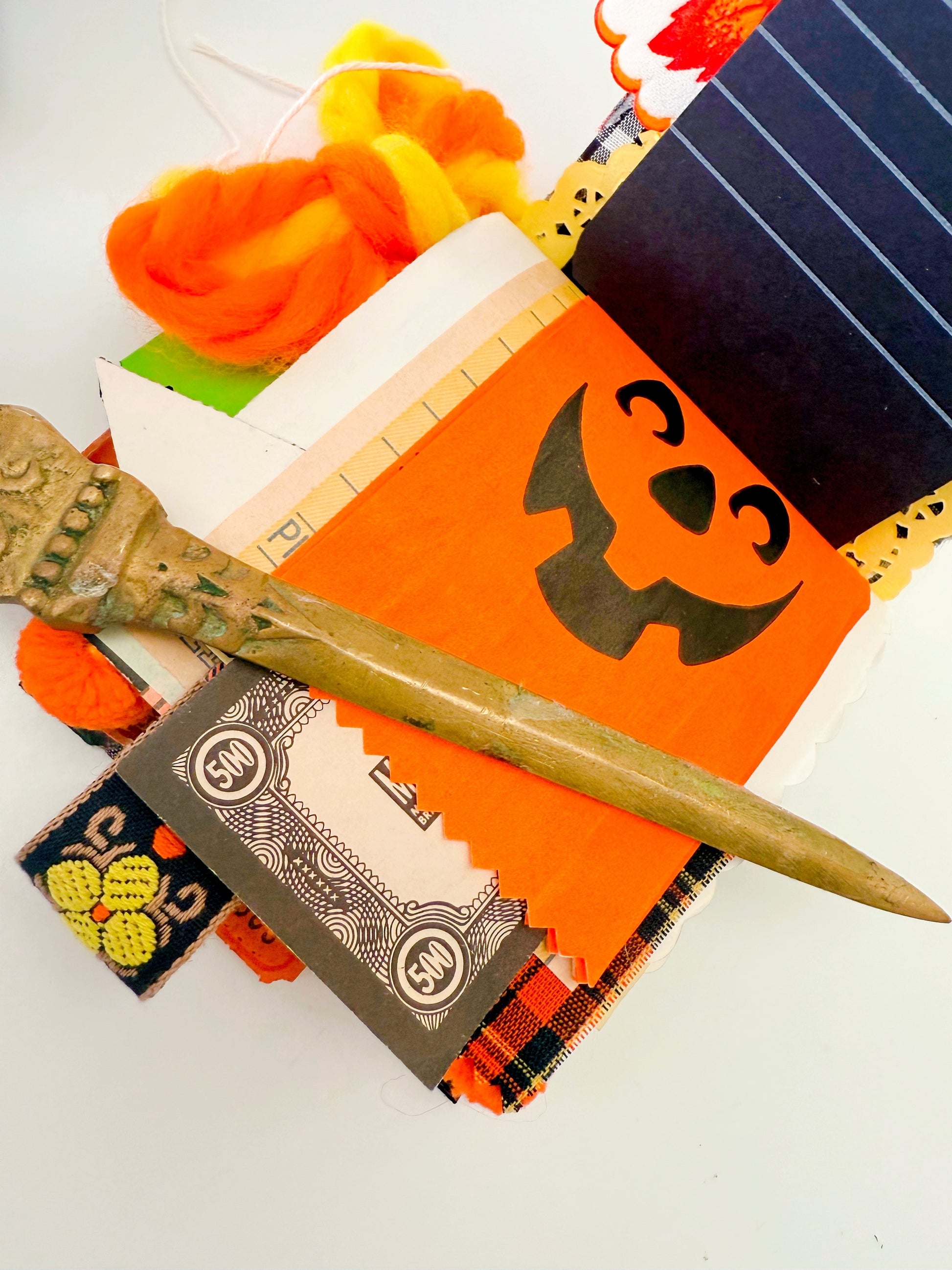 Vintage black cat & Jack O’ Lantern tally card handmade journal